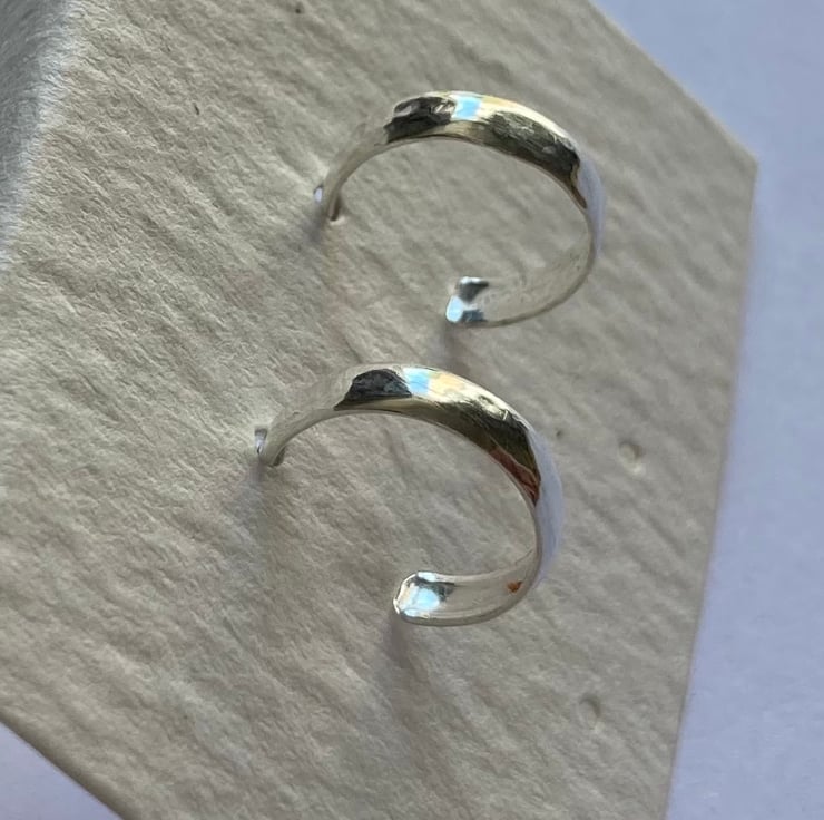 Handmade Huggie Hoop Earrings in sterling silver feature a smooth polish for a sleek and elegant look. With their simple design, these earrings are versatile and perfect for any occasion.