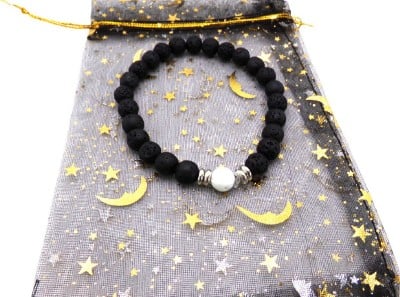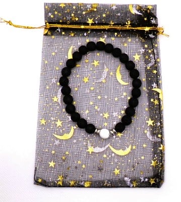 The bracelet will be presented on a card and wrapped in pretty tissue paper and placed inside a moon and stars organza gift bag.