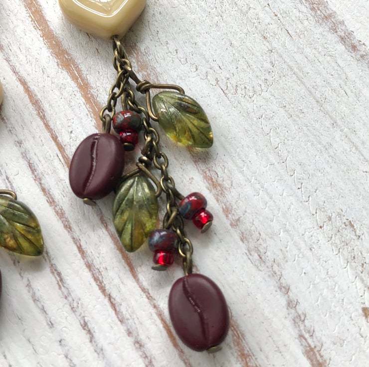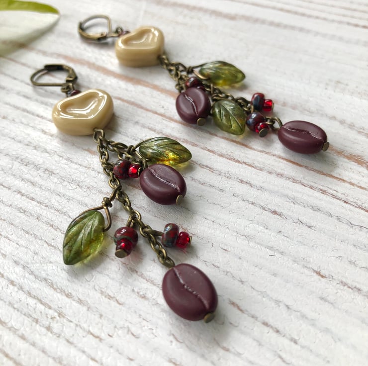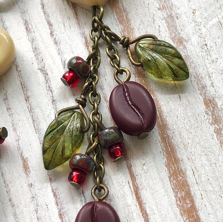 MATCHING BRACELET: https://folksy.com/items/8355113-Coffee-Lover-Bracelet-Czech-Glass-Coffee-Bean-Leaves-Heart