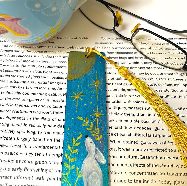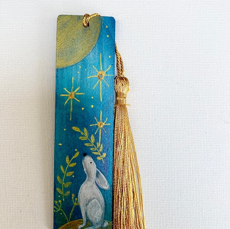 .An ideal gift for book lovers and readers everywhere, a unique piece of art marking the page of your favourite book. Librarians, collectors, art lovers and readers will love this sweet little hare staring up at the moon.
