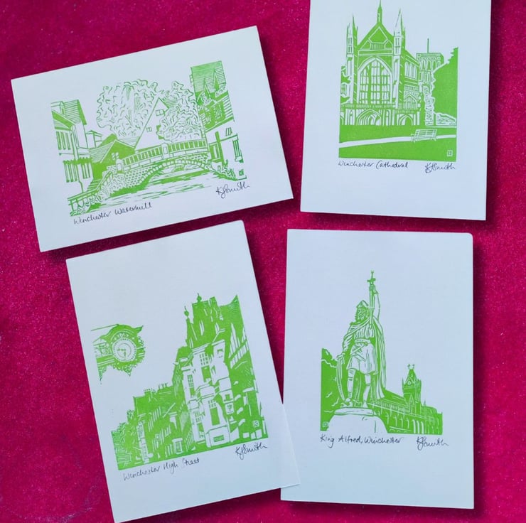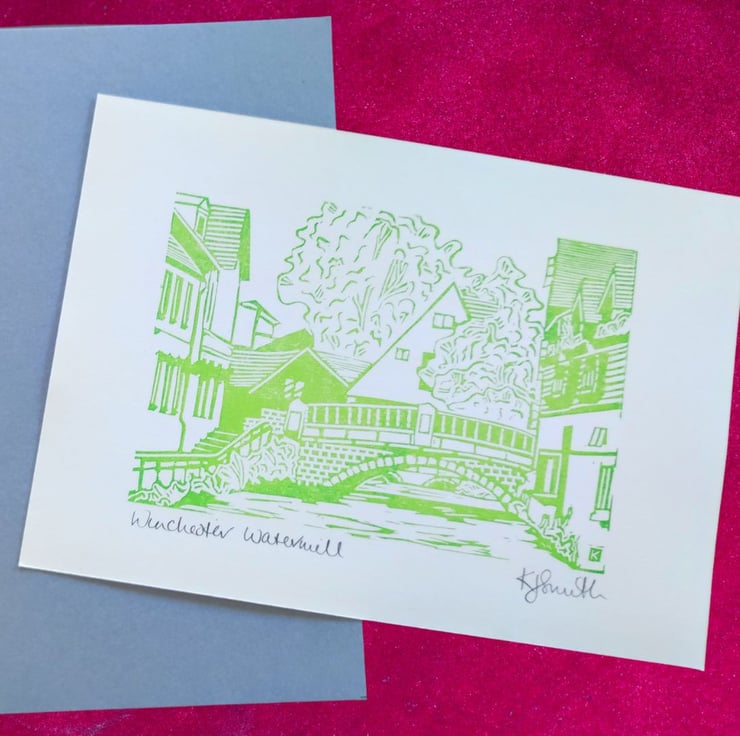 Because I hand mix the inks and print by hand you can be assured that every print is unique, coming out slightly differently depending on how I ink up the lino and the pressure I use when printing.
