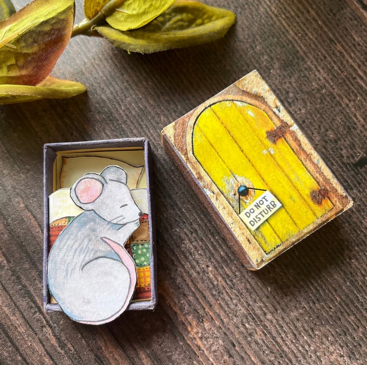 This matchbox art would make a quirky little gift or keepsake. I've made it using an upcycled vintage matchbox and colour copies backed with card. Other than the top and inside, the remaining parts of the matchbox have been left in their original form.
