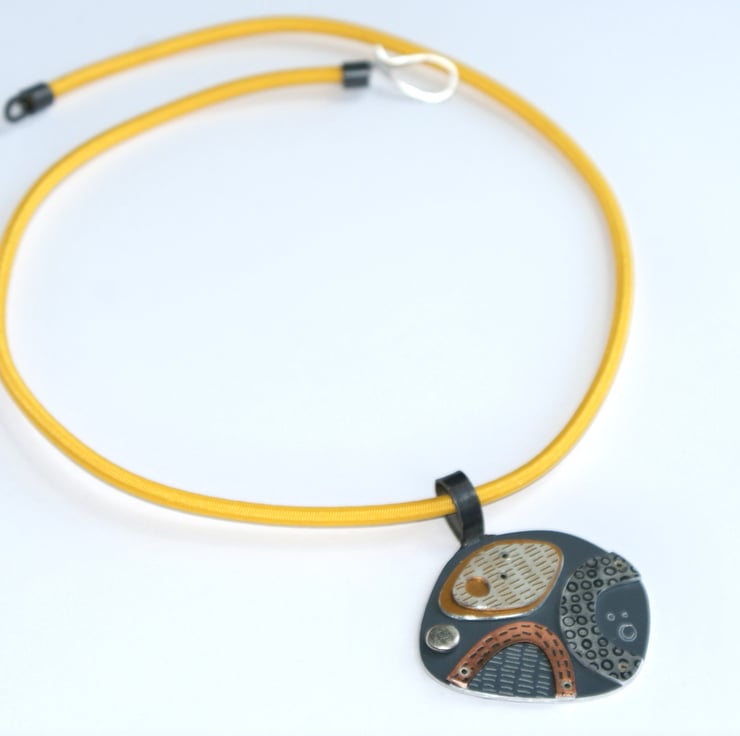 The yellow cord has a hand made oxidised silver clasp and is approx. 53cm / 21 inches long.