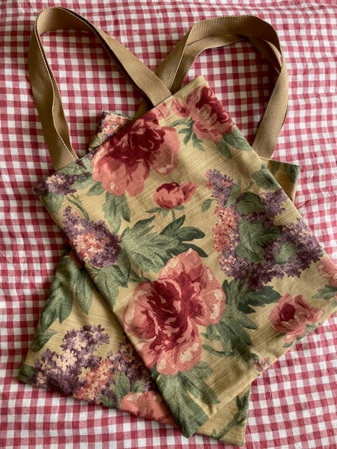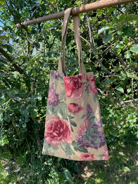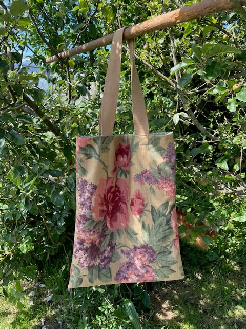 I've always loved Sanderson fabric and this pattern really doesn't disappoint. My only dilemma was what to make from this gorgeous remnant as it lends itself beautifully to so many projects. The peonies and lilac are perfect for Summer and, as my daughter observed, the sand-coloured background won't show the dirt quite so easily as a paler fabric! She's used a number of my bags to carry things to and from Uni and work, so can bear testimony to just how many things they will hold!