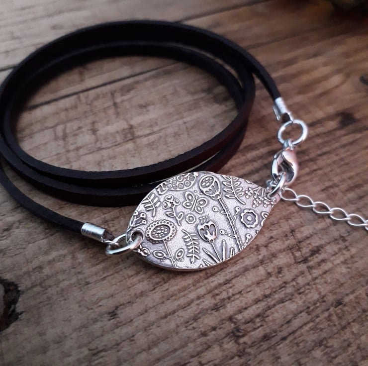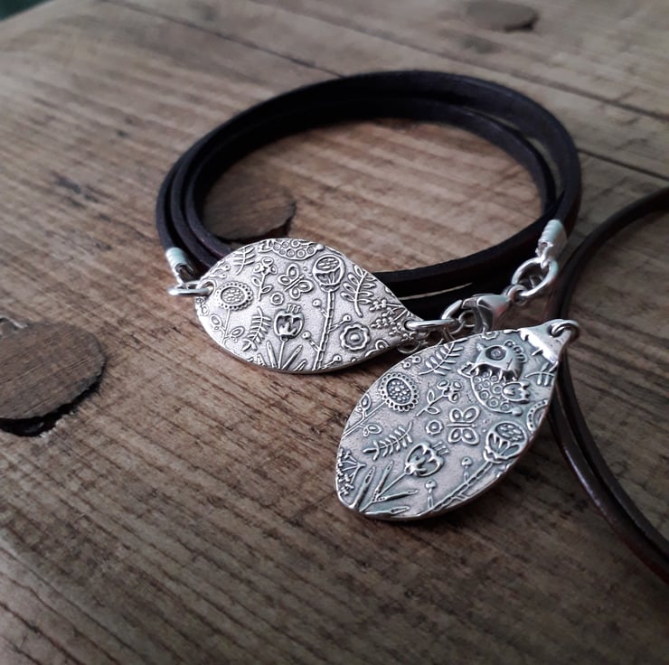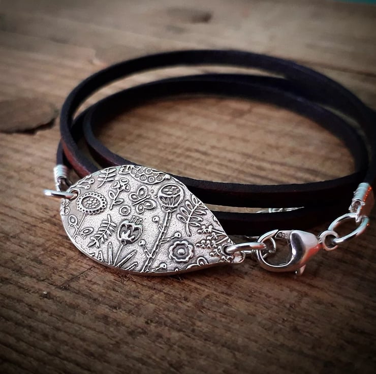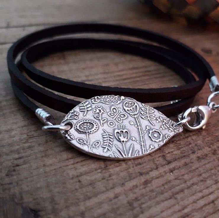 This beautiful scandi flower charm goes so well with the leather wrap bracelet. It's very natural and earthy and something a bit different.