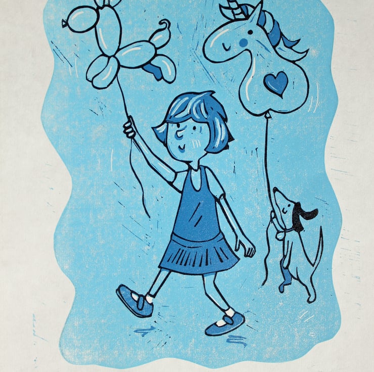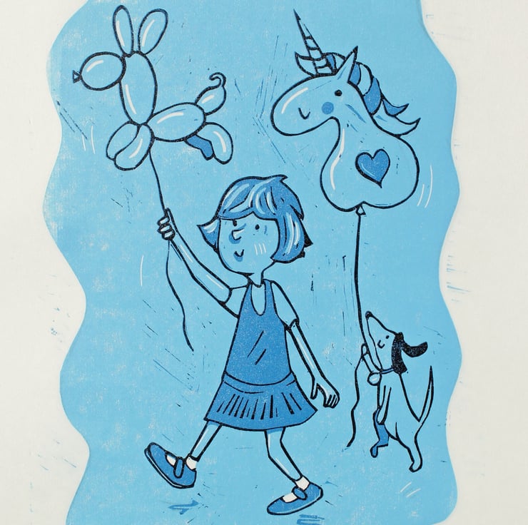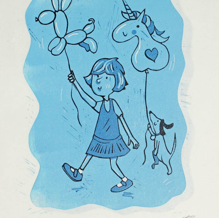 The girl doodle came first and I then added the dog as her companion before deciding on their balloons.