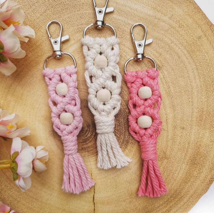 Explore our handmade Macrame keychain, now available in a spectrum of gorgeous colours.