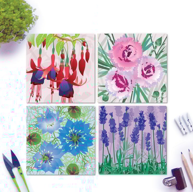 Four beautiful floral cards featuring some of the best blooms in English Gardens this July - many of which are Cottage Garden favourites! Great for Gardeners or anyone who loves flowers!