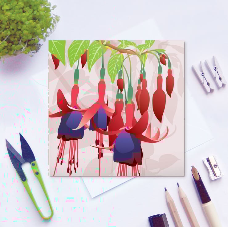Fuchsia - pretty bell shaped flowers grow profusely from this popular small garden shrub, smaller trailing varieties are popular in hanging baskets.