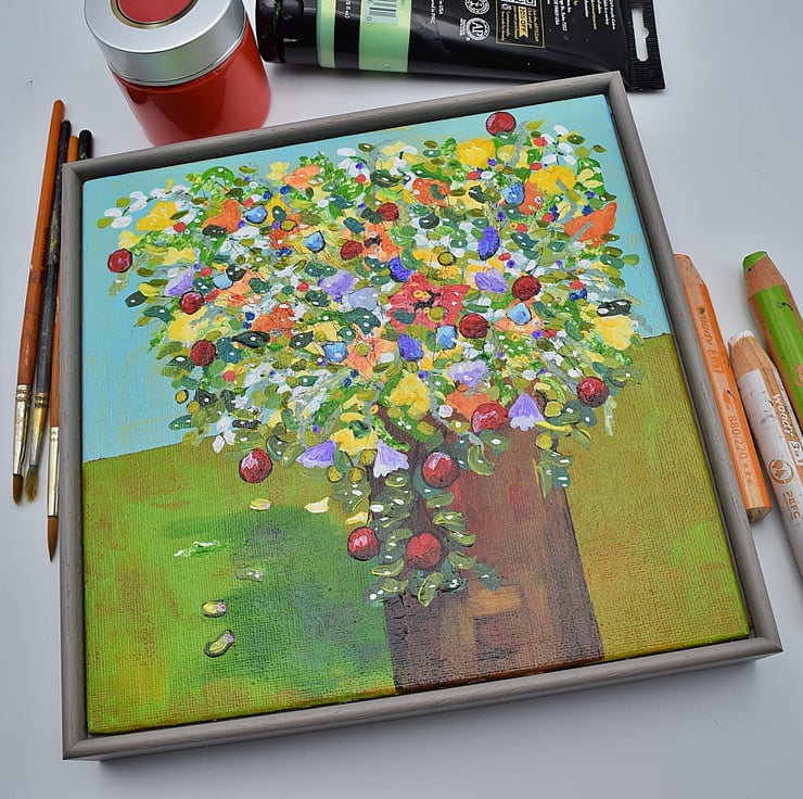 This original artwork of spring flowers will be posted out by first class Royal Mail. The painting will be covered with glassine paper before it is carefully encased in bubble wrap (or equivalent). It will then be secured in a heavy duty mailing box.