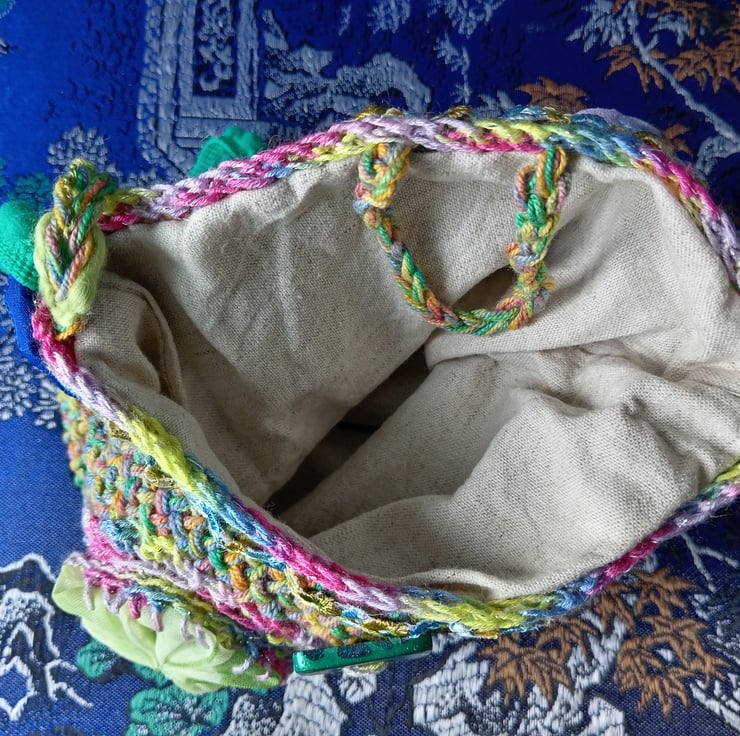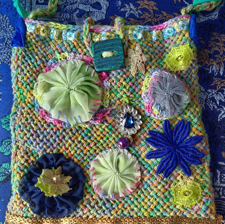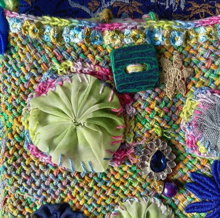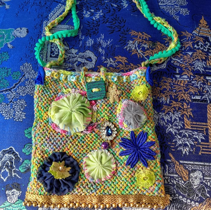 The bag is a gorgeous mix of fresh green colours with lots of interesting embellishment.