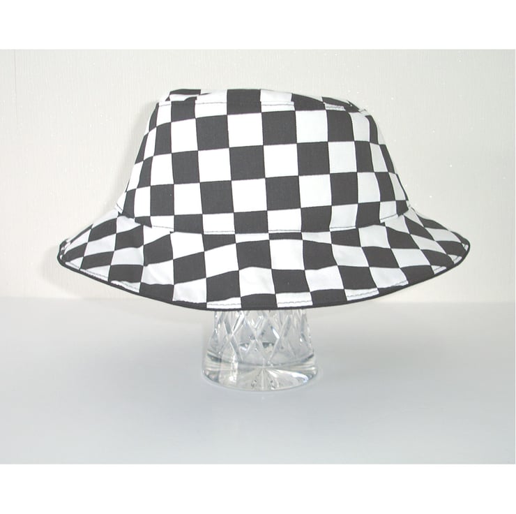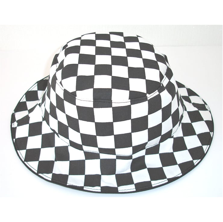 Sun Hat - bucket style created using a Black & White Check cotton fabric in the Ska Two Tone Style.