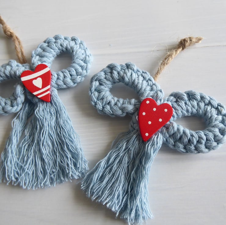 A letter box friend token gift, made from macrame cord, twine, and a wooden topper. Each bow measures 8cm long and supplied with twine for hanging. These will be wrapped and posted second class when payment clears. Please keep an eye out for other colour ways and different macrame crafts and home decor.