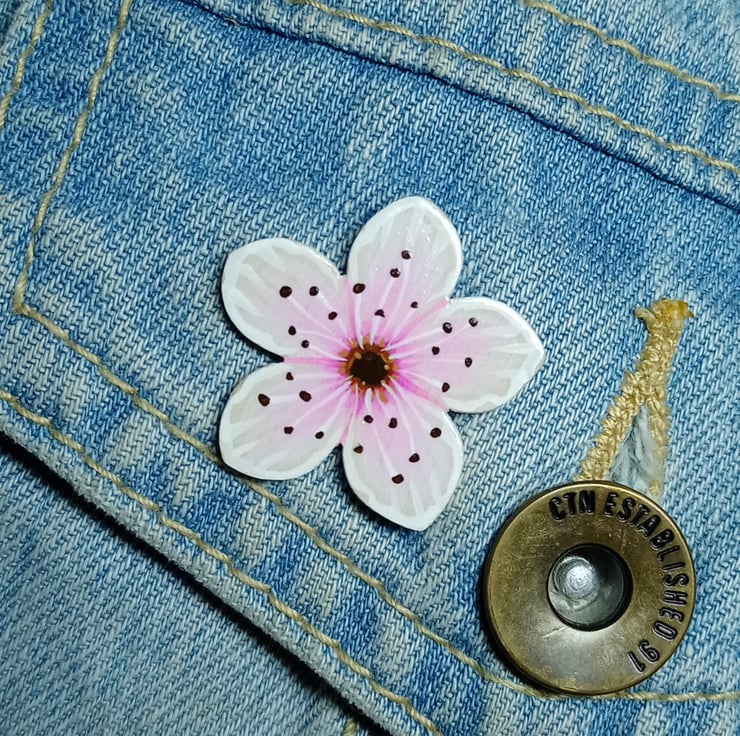 Cherry blossom trees are loved for their delicate blossom, which is reflected in this hand painted pin.