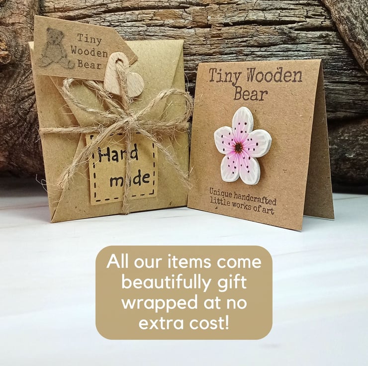 This flower pin is totally unique - designed, hand crafted and hand painted by an artist. It’s small and highly detailed - you can see the brushstrokes of the artist who has signed it on the back. Each purchase is individually gift wrapped and beautifully presented using plastic-free packaging (100% recyclable)