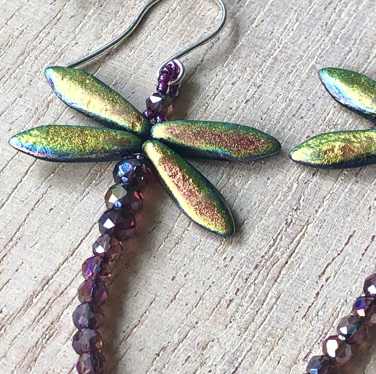 I love Dragonflies and often watch them out in the garden on summer days. It has taken me a long time to work out how to make earrings that are as magical as they are but as soon as I saw the beautiful iridescent Czech glass beads I knew I was on the right track.