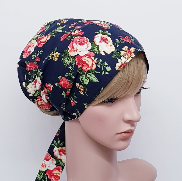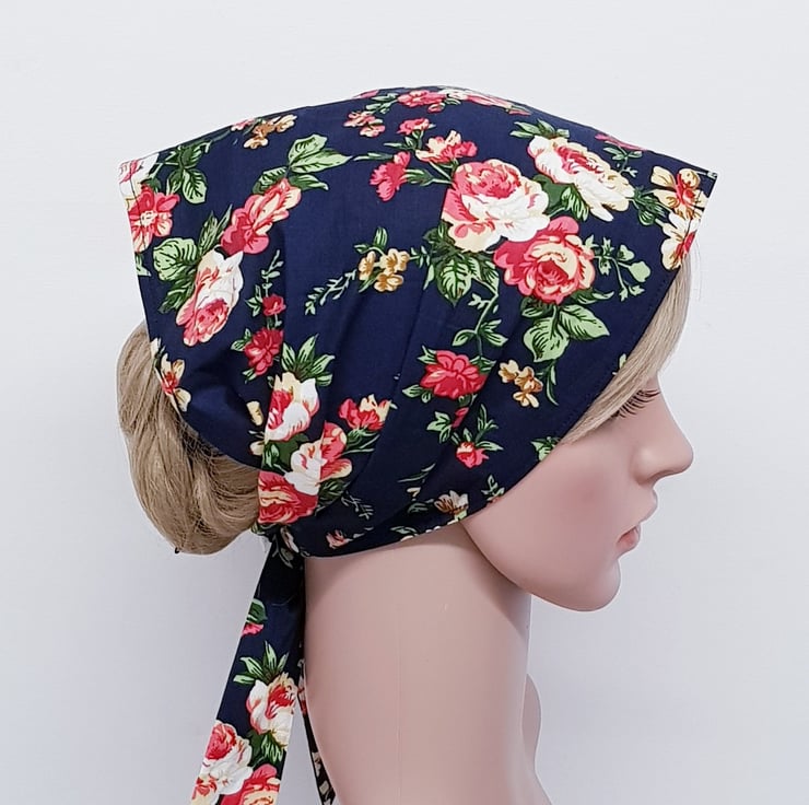 Self tie head scarf for women, wide floral cotton headband, summer hair scarf.