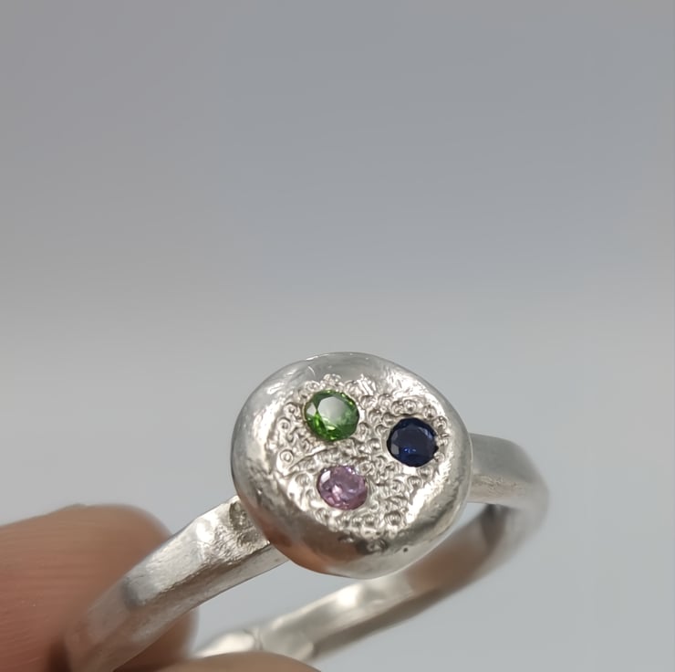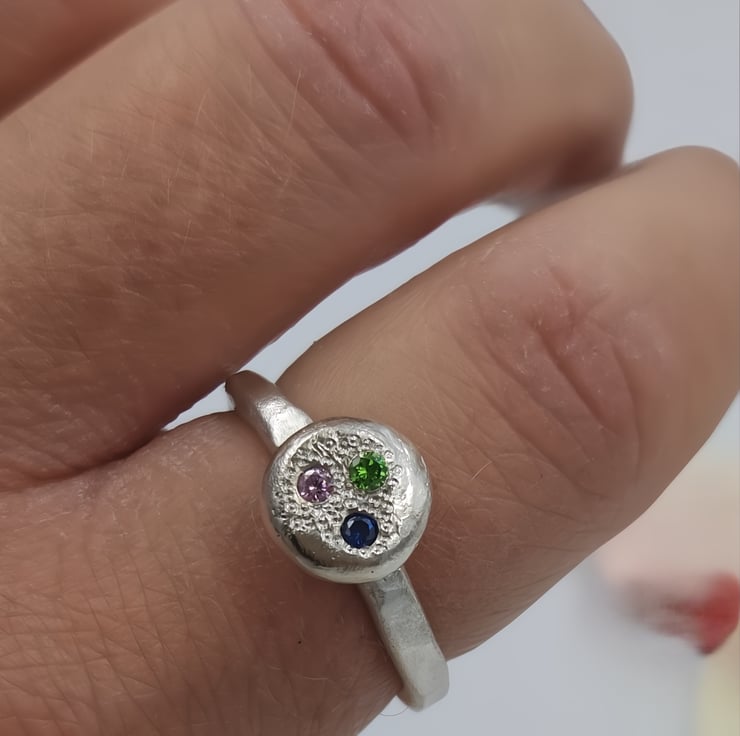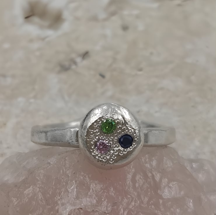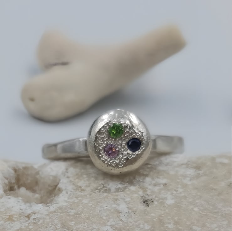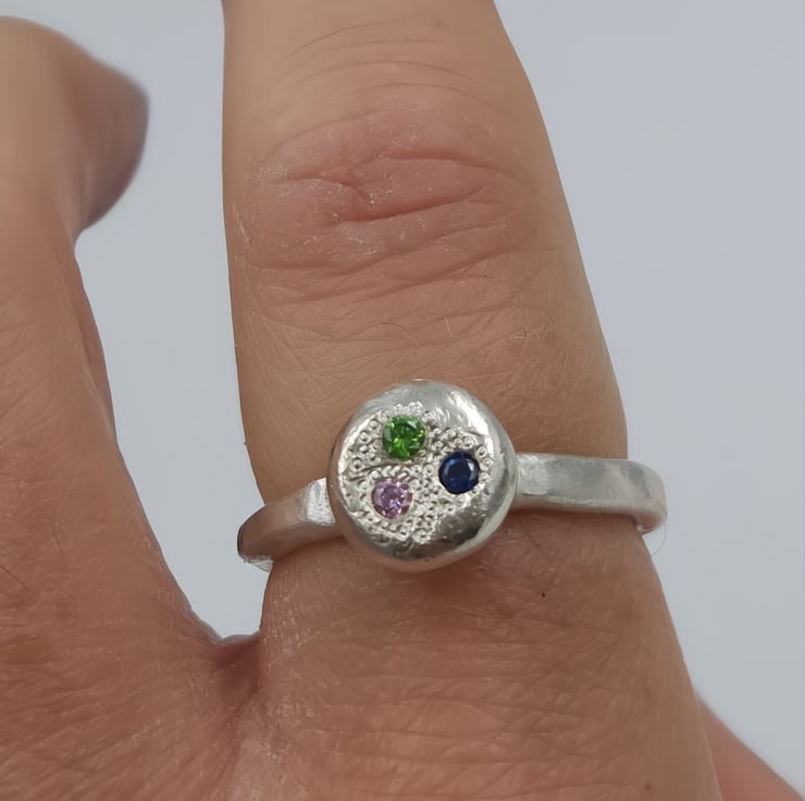 Sterling Silver Pebble Ring with Trio of Flush Set CZ Stones