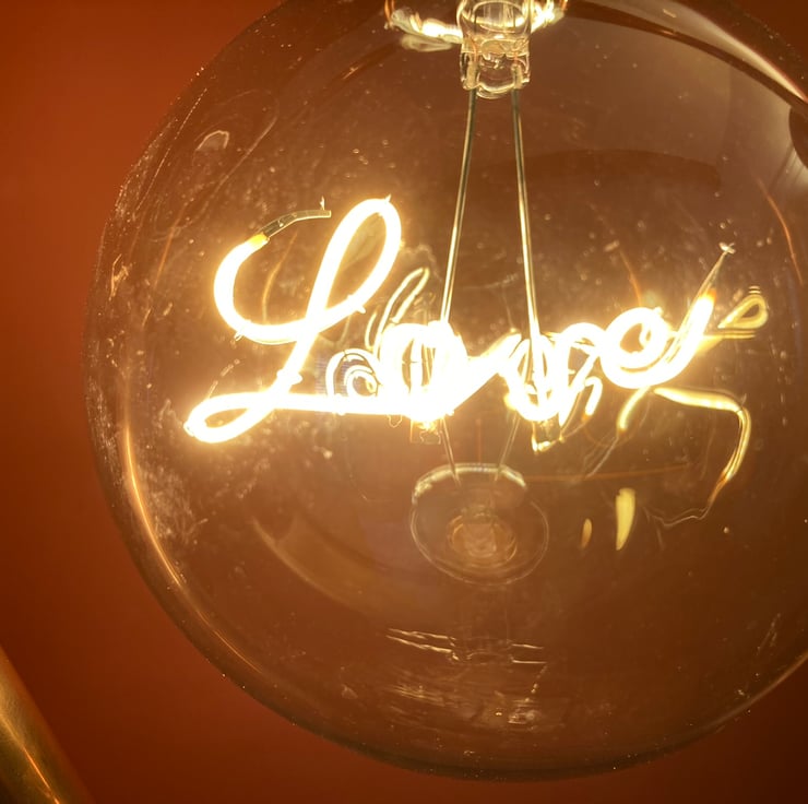 I had seen the bulbs with script filaments on sale and was inspired to make a statement lamp to go with the statement in the bulb!