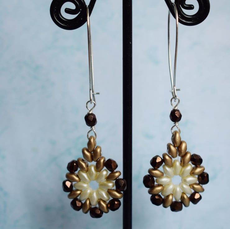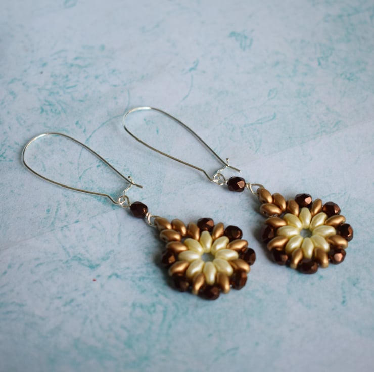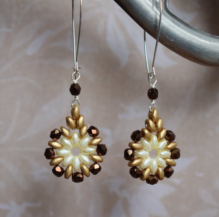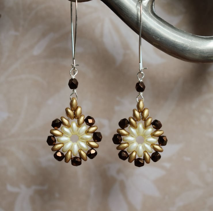 In their warm but neutral shades of brown, cream and gold these pretty beaded dangle earrings will go with all kinds of outfits so could become your new go-to earrings!