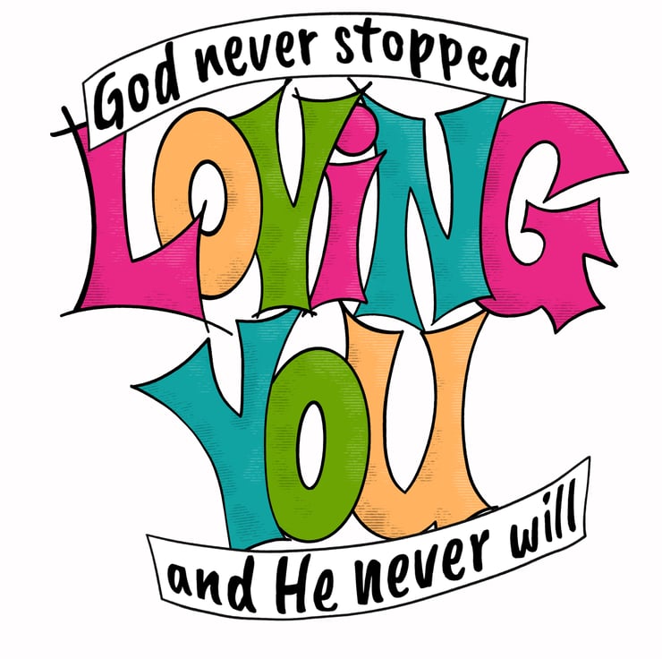 The Illustration is text based and says, "God never stopped Loving you and He never will"
