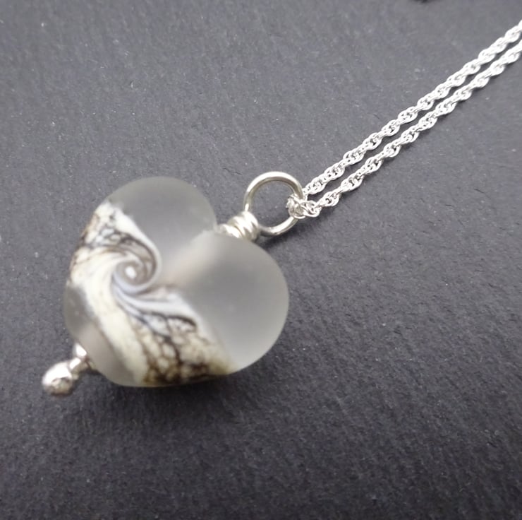 The pendant has been handmade by me using clear and ivory glass and tumbled to give a smooth finish.