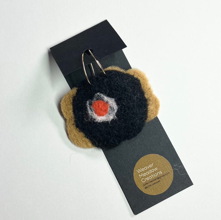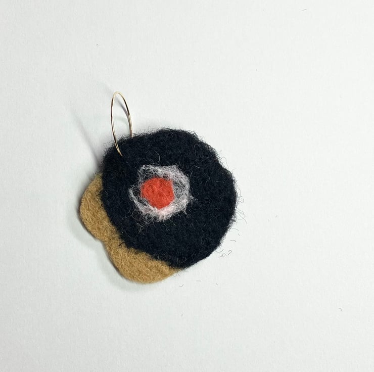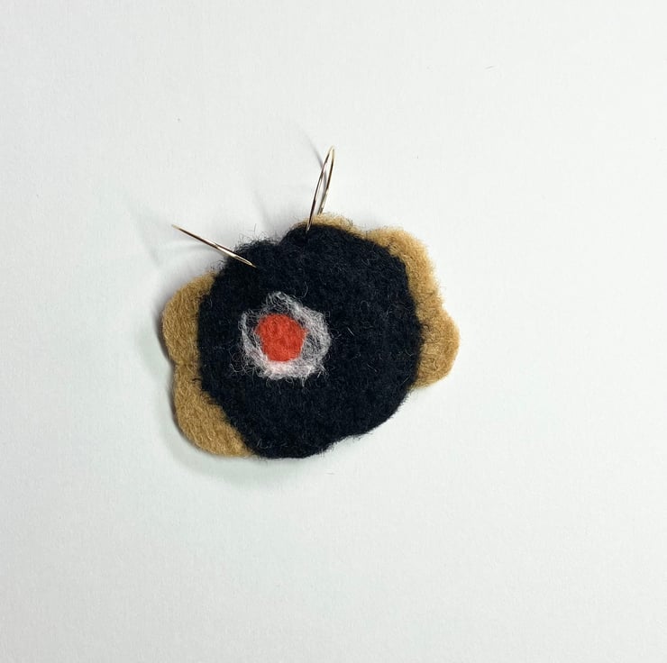 Handmade needle felted earrings 4.5mm on a gold coloured steel 30mm hoop