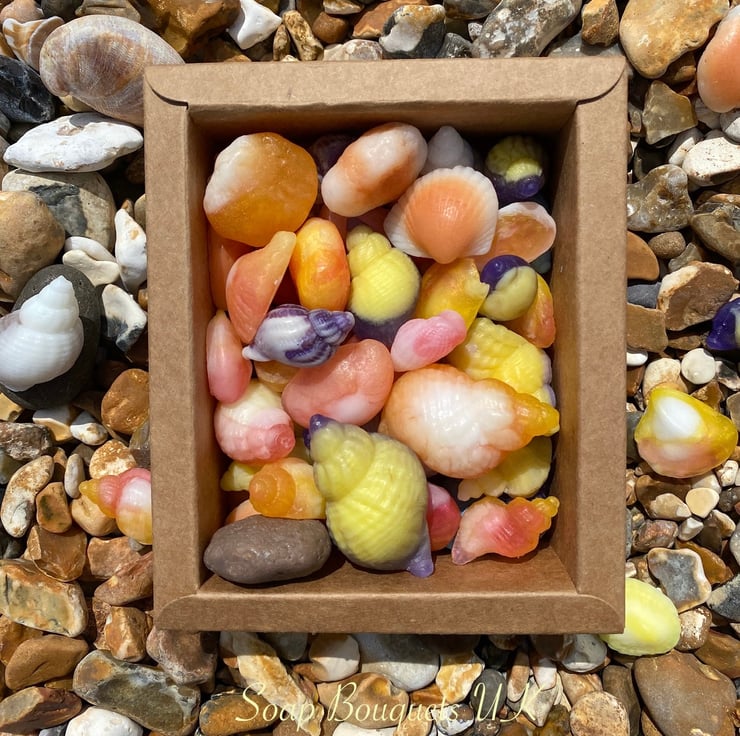 - Each soap is carefully crafted to replicate the natural beauty of seashells, sea glass, and pebbles.