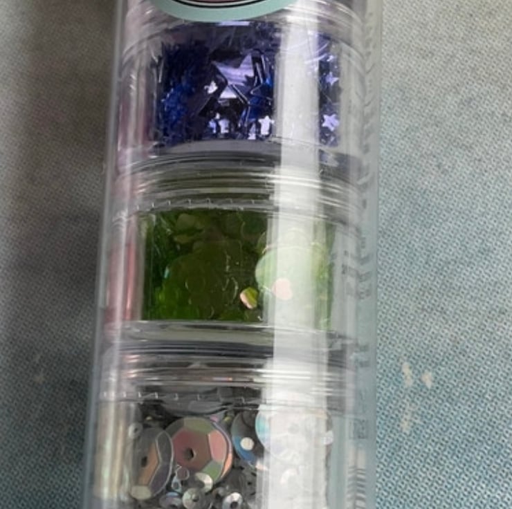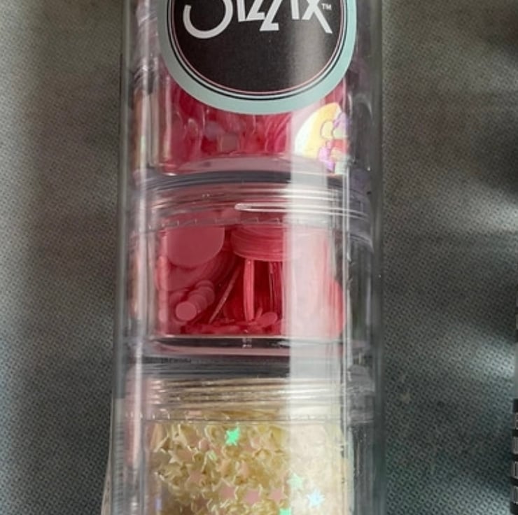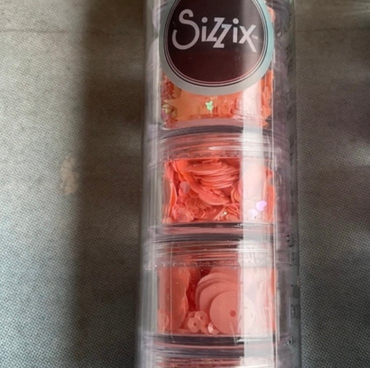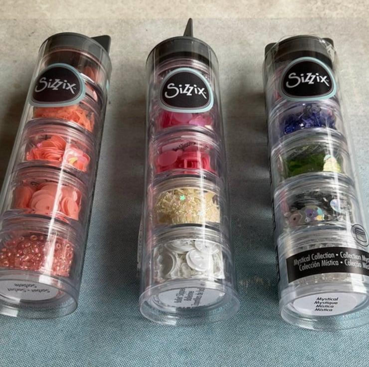 I’m having a craft room de-stash and have this set three brand new Sizzix sequins and beads available. There are three different tubes each with five pots of different sequins and beads.