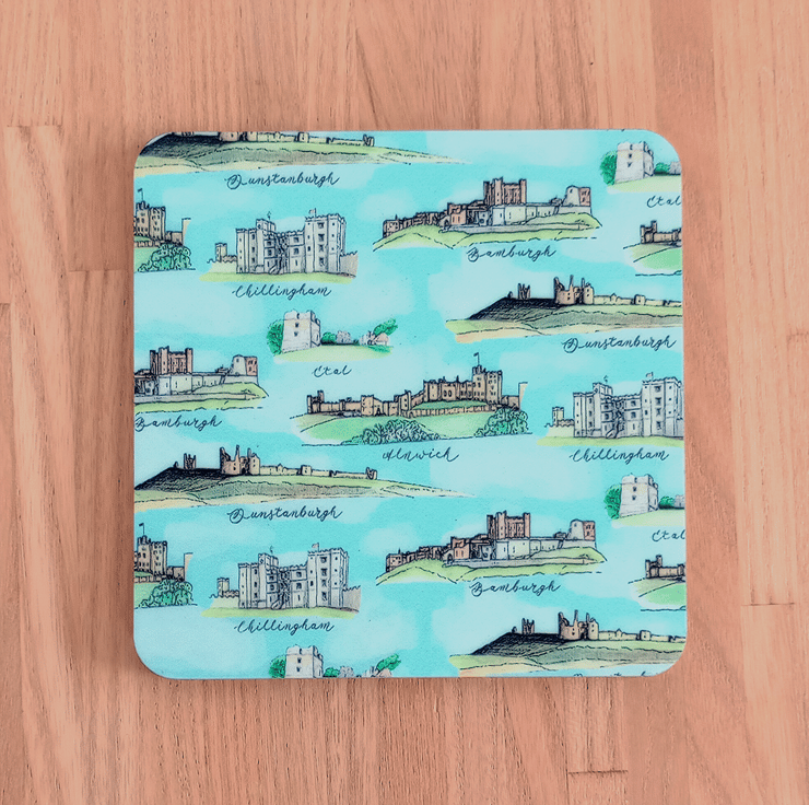 Set of x4 coasters in the same design. You might like to combine this set with my matching Castles of North Northumberland 100% cotton tea towel (see other listings).
