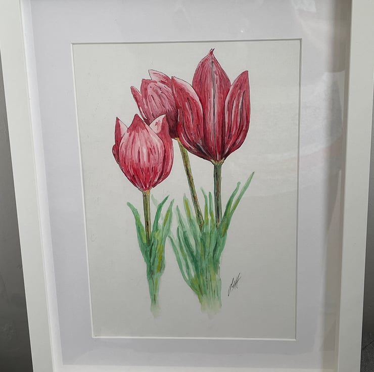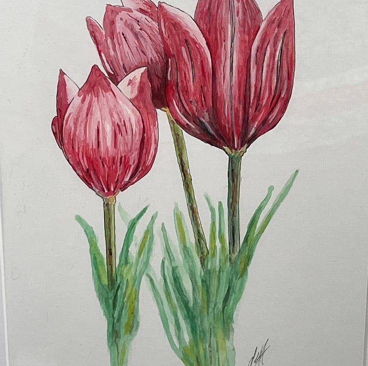 Original watercolour signed by the artist. Depicting tulips on 300gm acid free watercolour paper and comes with a Certificate of Authenticity.