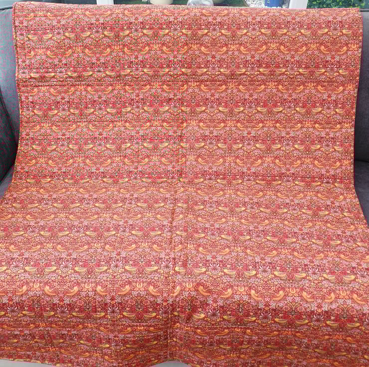 The whole thing was then sandwiched with cotton wadding and backed with a single piece of red strawberry thief fabric, so the back is as nice as the front, and I used the same fabric for the binding.