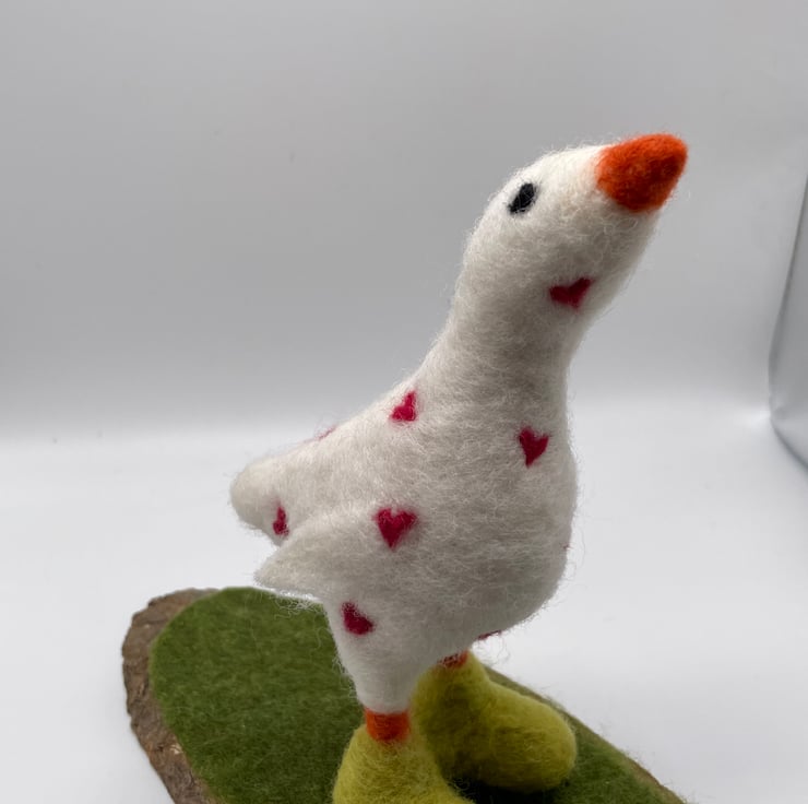 This duck has been handmade by me using needle felting techniques where I use needle felt needles and wool roving to create shapes.