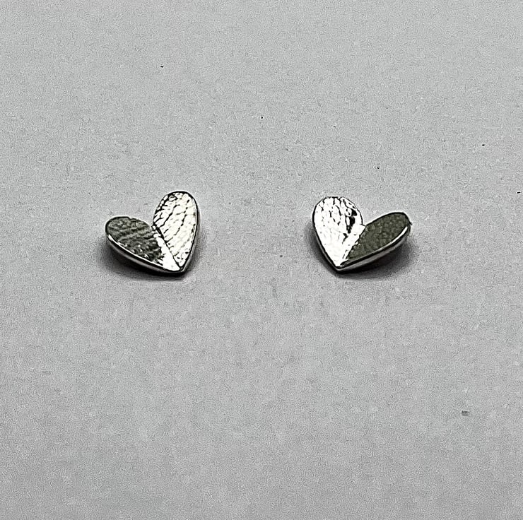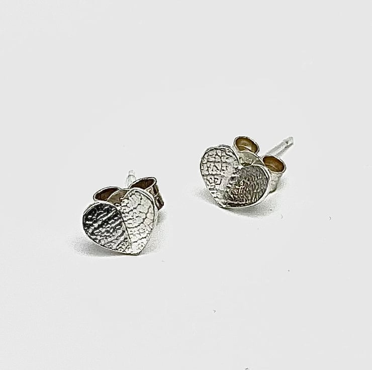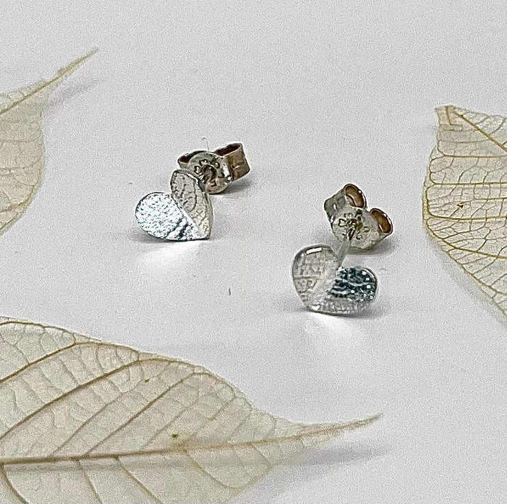 These sterling silver heart shaped leaf print earrings are made by running a piece of sheet silver through a rolling mill along with a delicate skeleton leaf to make the intricate detailed impression. The heart shape is then drawn on and saw pierced with a jeweller’s saw, shaped using pliers, the posts soldered, before being polished and silver scrolls added. So delicate & unique as every one is made individually each print will be slightly different, this is the beauty of handmade. A perfect gift for a loved one or just as a treat for yourself.