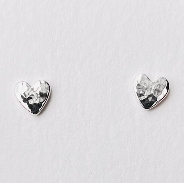 I have hand drawn these little hearts onto a piece of sheet sterling silver, used a jewellers piercing saw to cut them out, then hammered them for a delicate texture, that catches the light beautifully, before soldering sterling silver posts, polishing & adding sterling silver scrolls. They are so sweet & each pair is unique, this is the beauty of handmade. They are a perfect gift for a loved one or just a treat for yourself, so comfortable for everyday wear.
