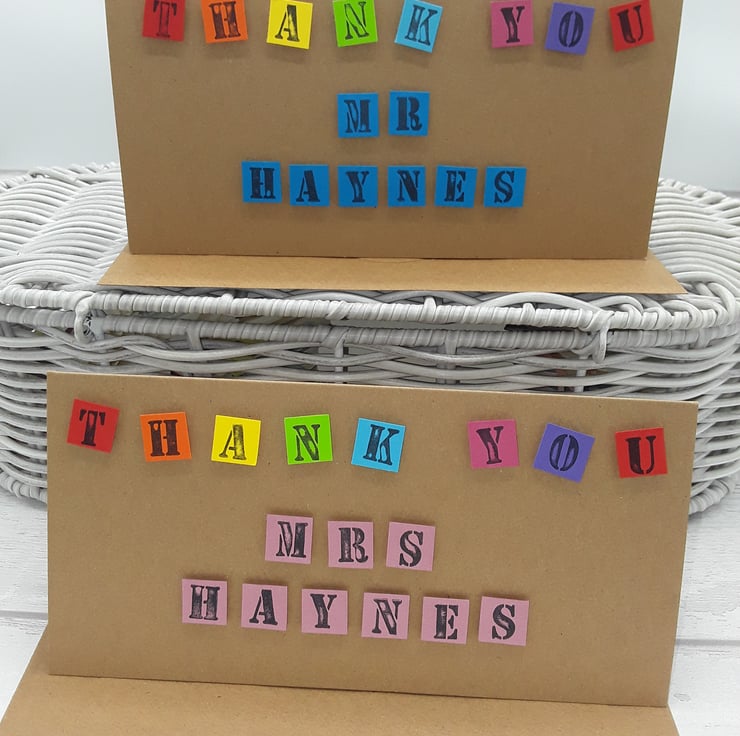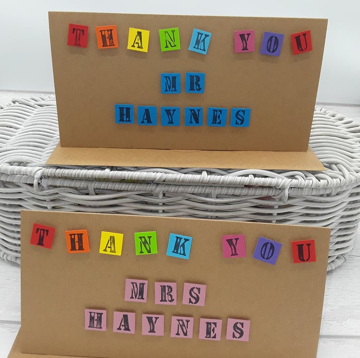 This set of 4 personalised thank you cards and envelopes are a lovely and affordable way to show your appreciation to teachers, teaching assistants and nursery staff.