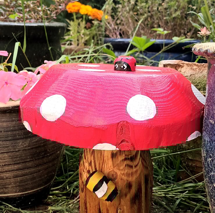 This lovely 'Red Spotty Toadstool' is handmade and makes a colourful addition to any garden! It is coated with weatherproof paint so is happy in the rain! A bit of cracking is a natural process but to reduce this it is recommended to display the toadstool away from direct sunlight.