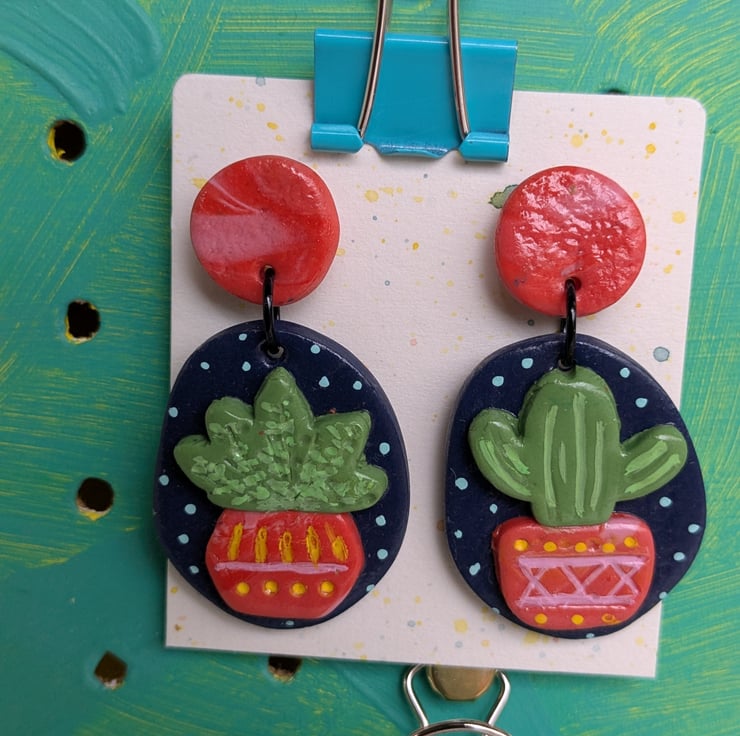 Say hello to your new favourite statement earrings! These colourful cactus danglies are handmade from Fimo polymer clay and packed with personality. They’re bright, playful, and guaranteed to bring good vibes and compliments wherever you go.