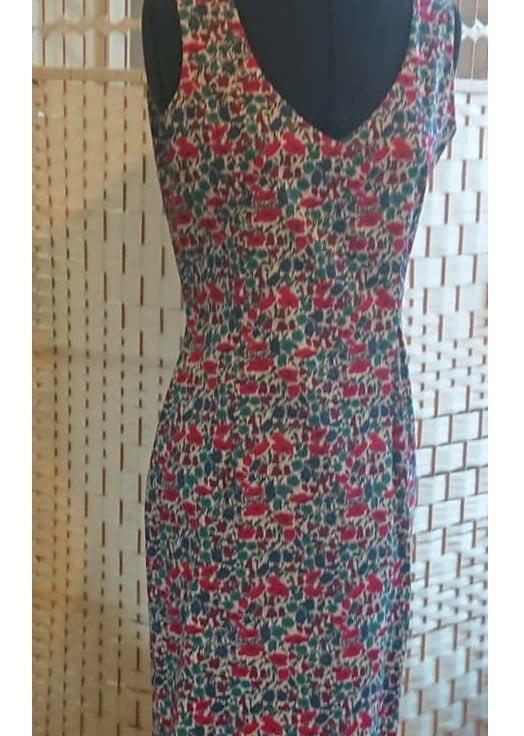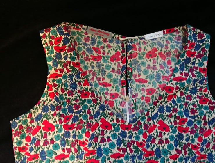 Short sleeveless Liberty print cotton summer dress with a v neck, unlined