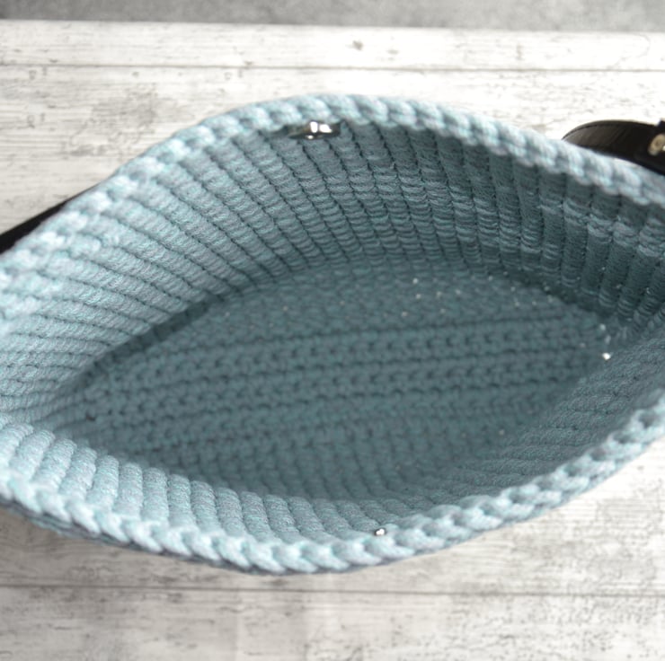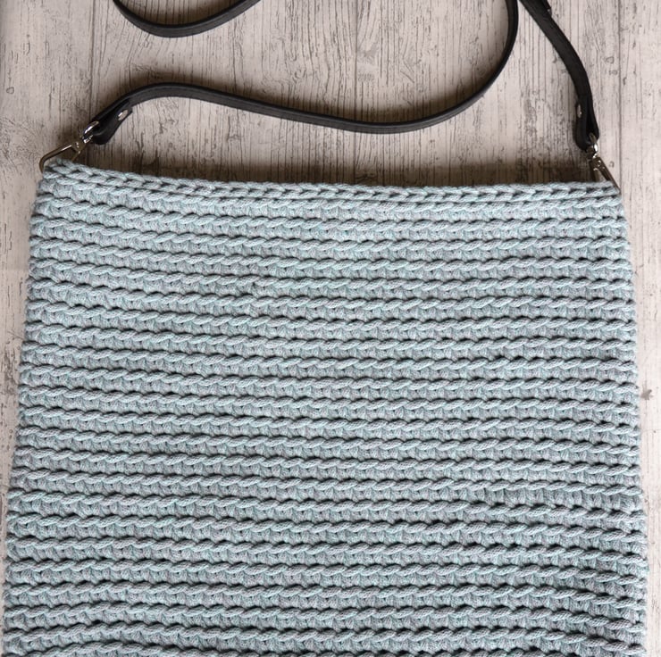 It is made with cotton cord in a beautiful grey-mint colour, ideal for spring and summer.