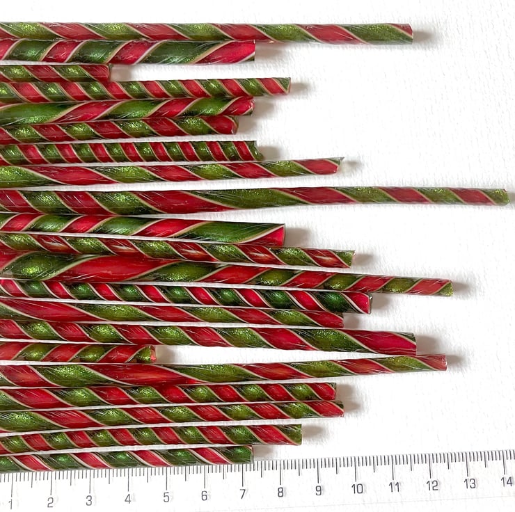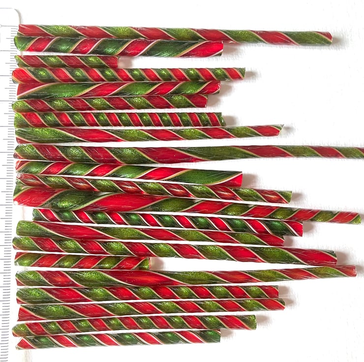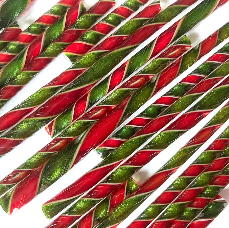 Christmas pack of twisty cane off cuts in red, white and sparkly green colours as shown in photos.
