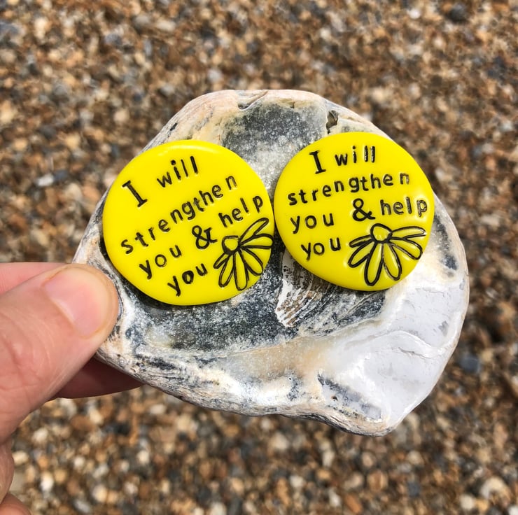 As a primary school art teacher, I know that words have the power to build and encourage and I get to see the joy of word spoken light up a little face. I started making these polymer pebbles as flower designs on cards, but was quickly asked to make these as pebbles that could be held and treasured. Words were then added to produce the designs you see before you.