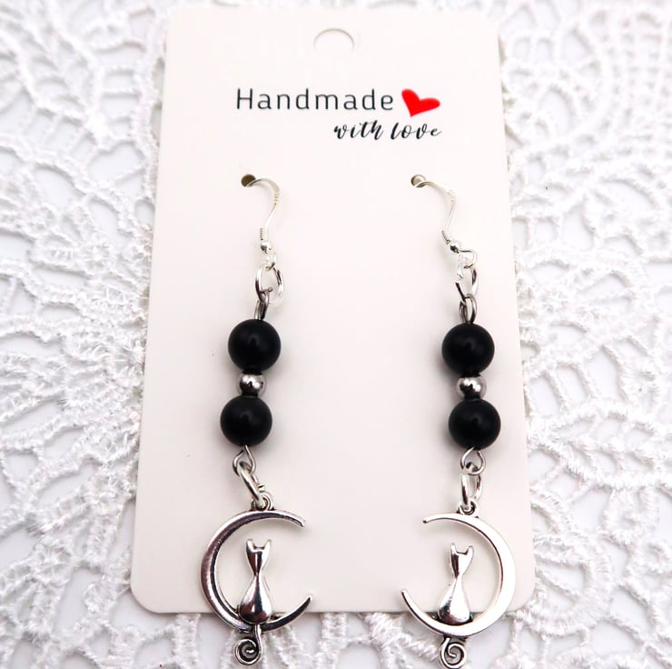 For the Earrings I have used 6mm Genuine Obsidian Beads. The Spacer Beads are Silver Plated as is the Car Charms. The Ear Wires are Sterling Silver Hallmarked.