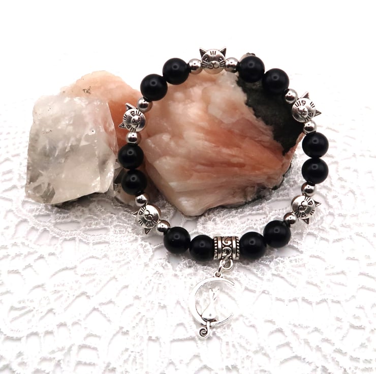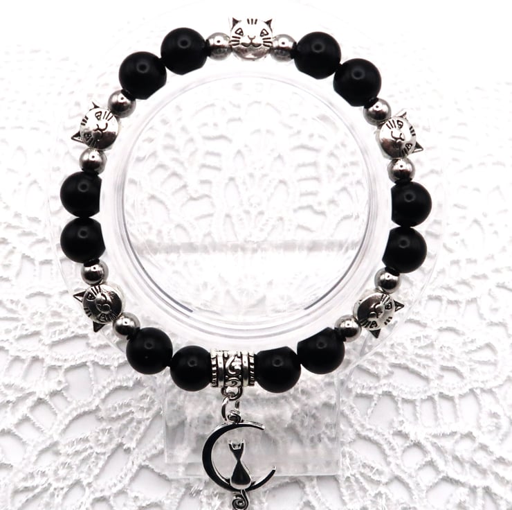 I love this Bracelet. The Cat Beads are gorgeous. I have used genuine 8mm Obsidian Beads for the Elasticated Bracelet.