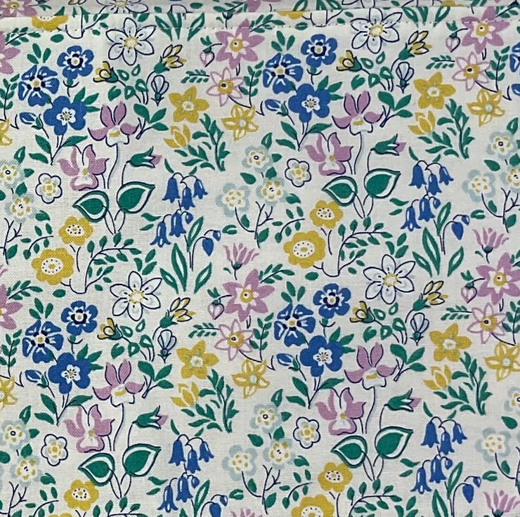 This case is made from The prettiest Liberty floral print Lasenby cotton which is a heavier weight than their tana lawn and therefore much more suitable for needle cases. This print is “silver bells ” a pretty small floral print on an off white background. I have carefully paired it with deep lilac cotton for the lining, underside of the flap and upper needle pocket.