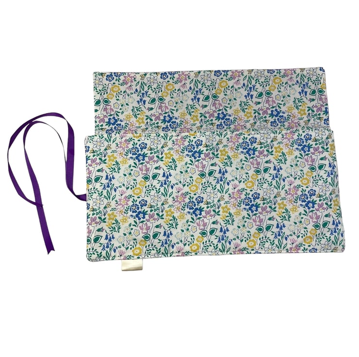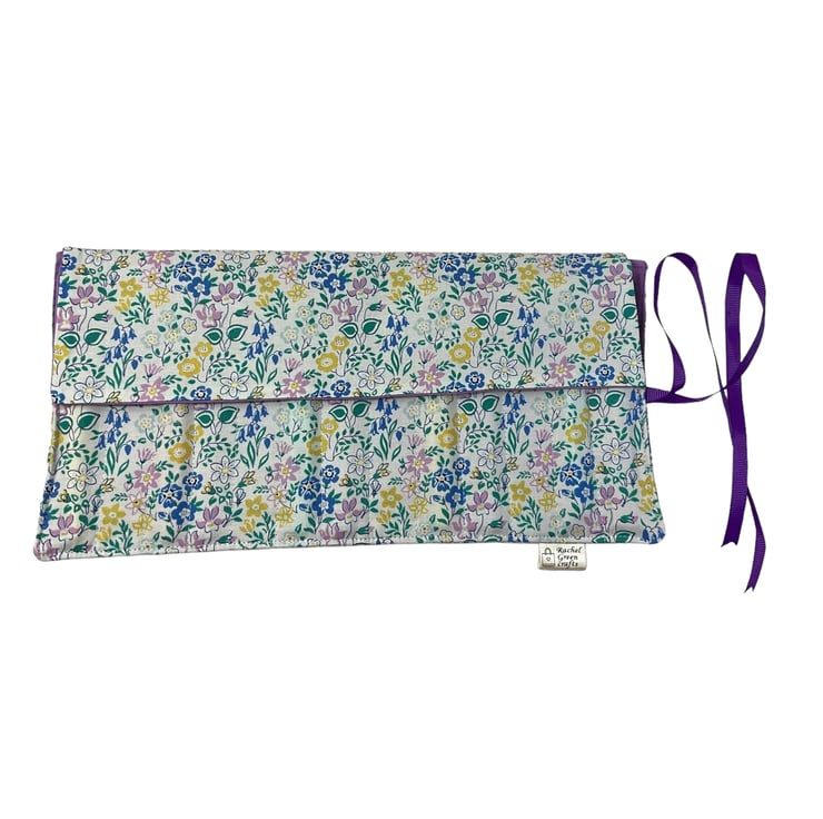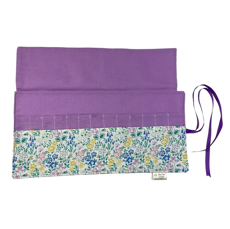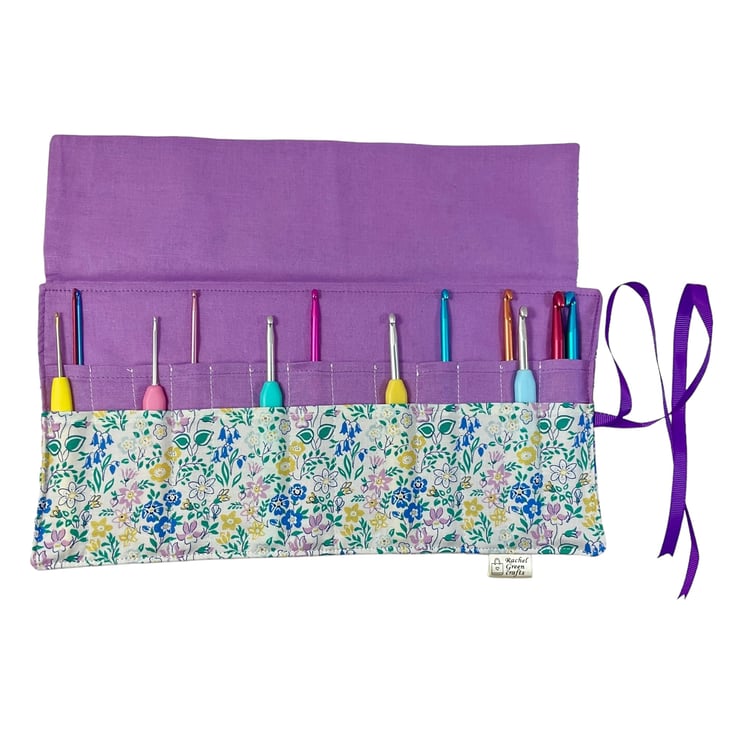 Crochet hook case in Liberty floral fabric, Ergonomic roll up hook organiser,
