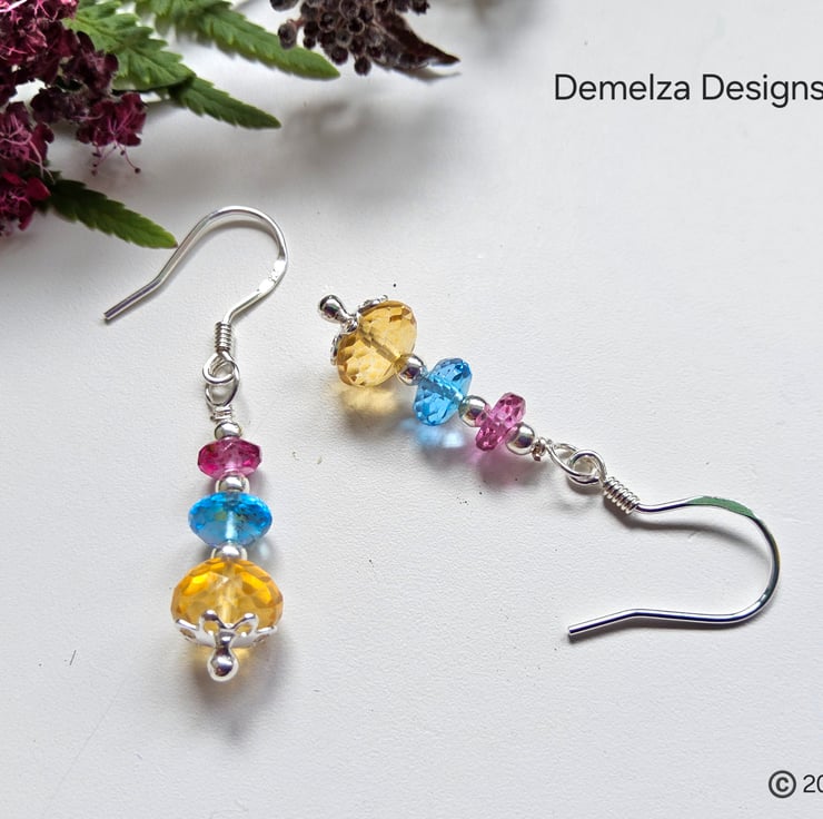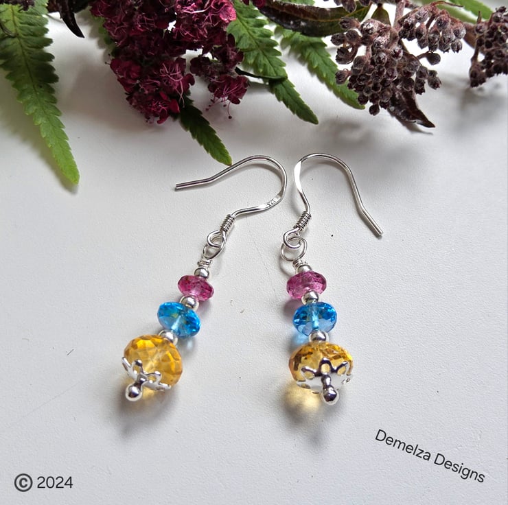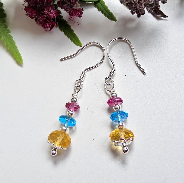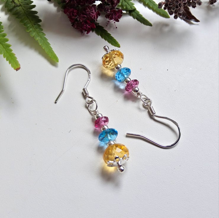 They have been created using 8mm AA grade faceted citrine rondells, 6mm AA grade london blue topaz faceted rondells complimented with AA grade 5mm pink topaz rondells. All of the gemstones display strong colour and made with all 925 sterling silver components.