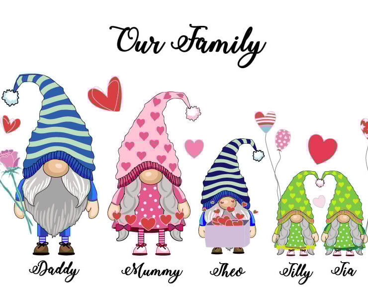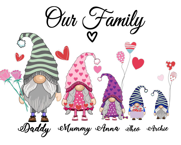 These quirky little gnome prints make a great addition to any family home. Printed using Eco ink, onto high quality, dense cardstock and designed from scratch by Craftybee. Please add names in the dropdown when ordering along with anything else you might like to add.