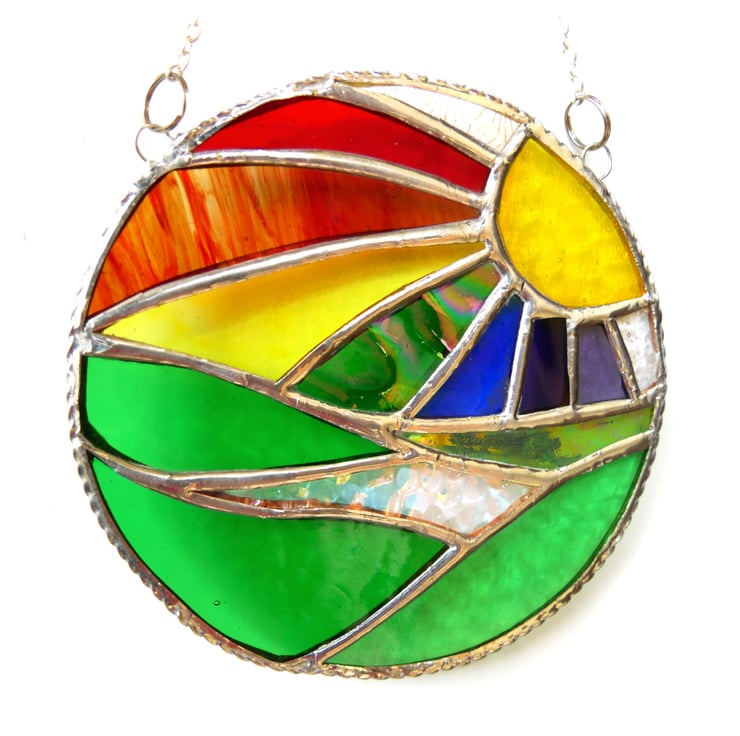 New Day Stained Glass Suncatcher Handmade Rainbow Ring 059