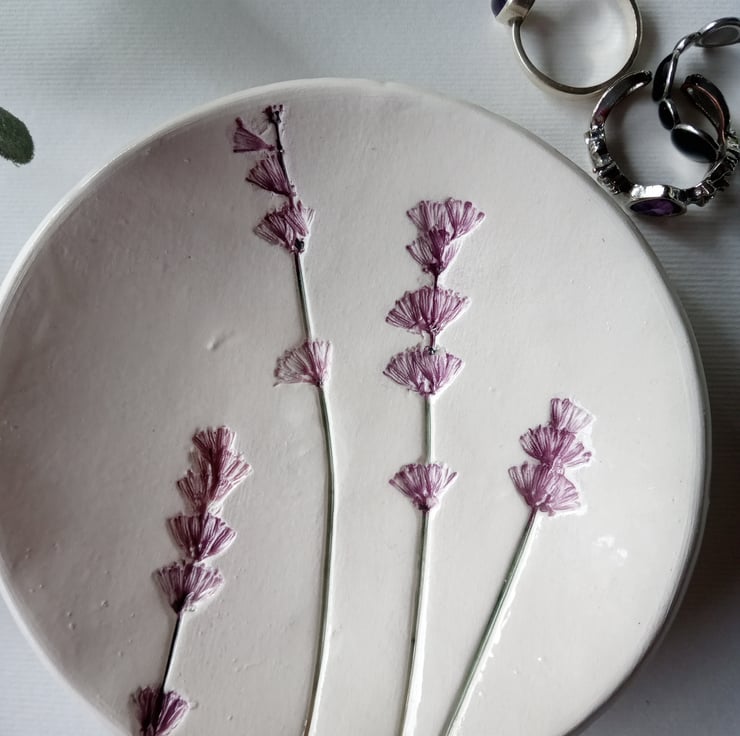 This is one of my trinket dishes I make from pressing real plants into the clay.